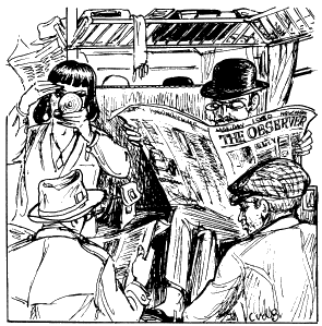 Op een grauwe novembermorgen rijdt de ondergrondse naar het centrum van Londen. Het is nog vroeg. Zoals gewoonlijk zitten de meeste reizigers hun ochtendkrant te lezen. Een meisje legt de laatste hand aan haar make-up. Reizigers die geen krant hebben, staren voor zich uit, of slapen.