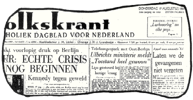 Op 17 augustus 1961 verschijnt er een artikel op de voorpagina van de Volkskrant onder de kop: Laten we de gevangenen niet vergeten. In het artikel vind je zinnen als: "Achter prikkeldraad hunkert een paar miljoen mensen naar het ideaal van de vrijheid". De meeste zinnen komen uit het oorspronkelijke Engelstalige artikel: "Geen dag of er wordt iemand gearresteerd, verhoord, mishandeld, gefolterd of ingesloten. Het verschrikkelijke is niet alleen dat zij er zijn, deze gevangenen die naar vrijheid streven - nog verschrikkelijker is misschien dat wij hen vergeten. Twee, drie dagen, een week lezen wij hun namen - daarna zijn we ze weer vergeten."